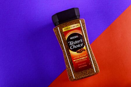New York NY NOV 29 2019: Nescafe jar instant granulated coffe brand of Nestle