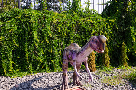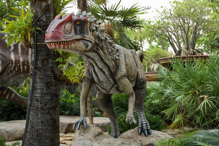 Nong Nooch Garden, PATTAYA, THAILAND - April 1, 2020: Dinosaur Valley? in Nong Nooch Tropical Botanical Garden, Pattaya, Thailand. compsognathus.