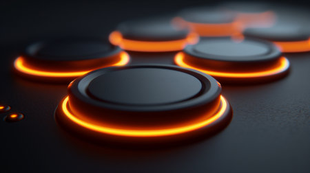 This image showcases a close-up view of a high-tech control panel featuring various buttons and a joystick, highlighting sleek design and functionality.