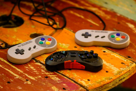 Video Game Controller on Wooden Table, Gaming Console Accessory for Entertainment