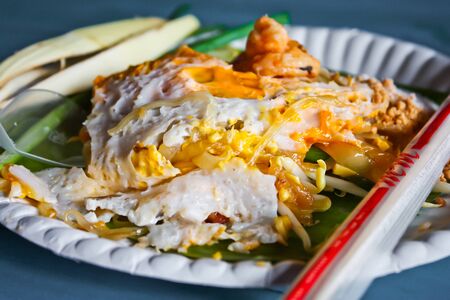 Pad Thai, stir-fried rice noodles with shrimps, Thailand's national dishes.