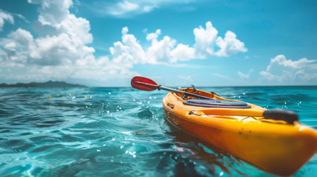 A vibrant orange kayak gliding through turquoise waters, showcasing adventure and tranquility in a natural setting.