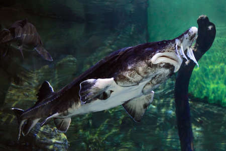 Sturgeon swim in the aquarium