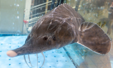 American paddlefish, Polyodon spathula in freshwater aquarium in Lausanne in Switzerland