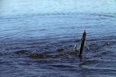 Sport fishing in the north river. Dynamic picture when Saberfish (Pelecus cultratus) are brought to the surface