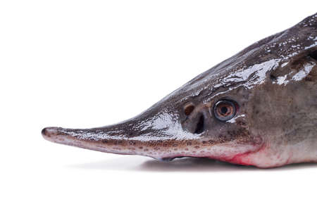 sturgeon fish is isolated on white background, closeup