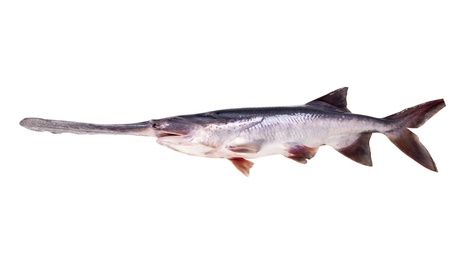 Raw big paddlefish isolated on a white background.