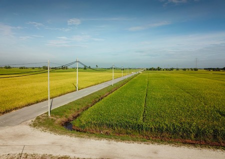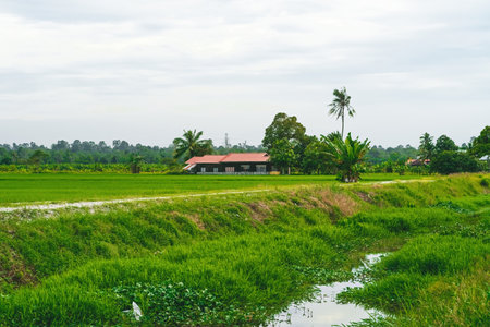 Paddy field village on a sunny day in Sekinchan, Selangor, Malaysia.