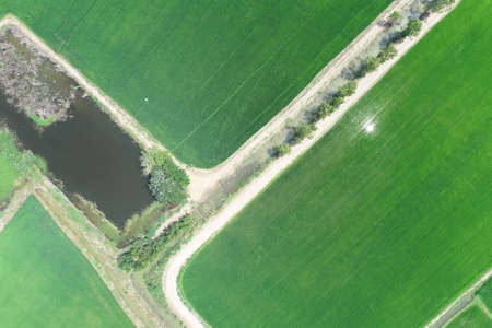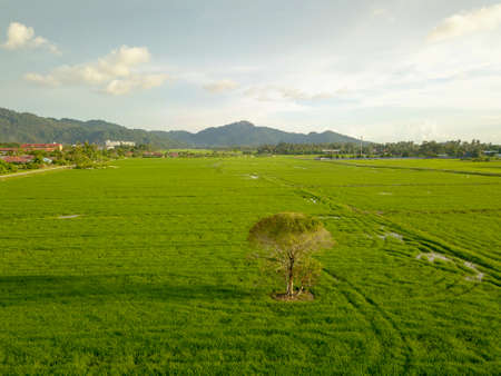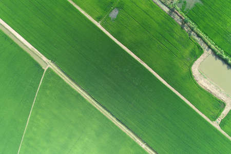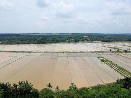 Selangor, Malaysia- November 15, 2017: Aerial view of paddy field at Sungai Sireh, Kuala Selangor.