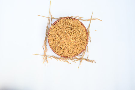 paddy rice seed on a white background.
