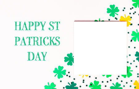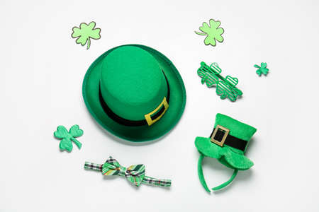 Holiday template Happy St. Patrick's Day on a white background. op view, lie flat, copy space. High quality photo