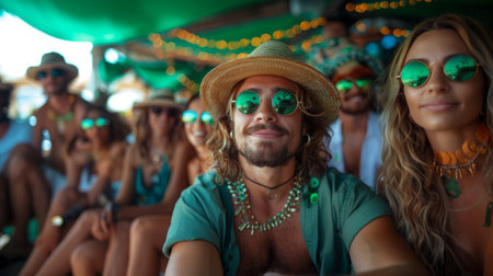Group of friends at a beach party on the island of Bali celebrating St. Patrick's Day.