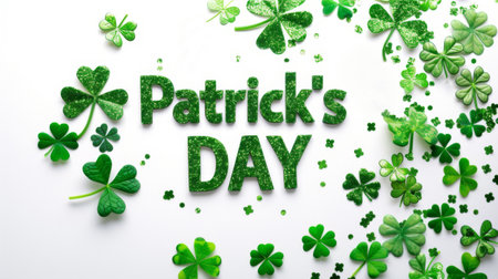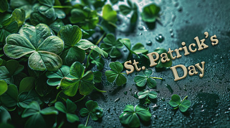 A close up of a happy st patricks day greeting with shamrocks, AI