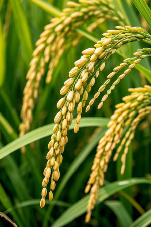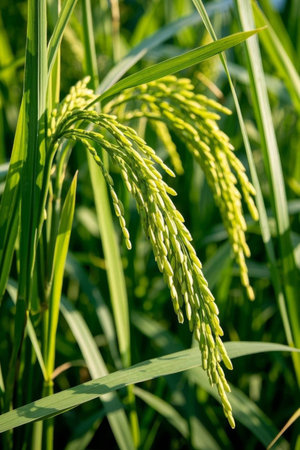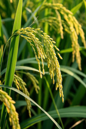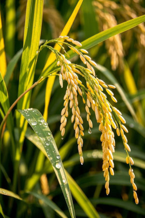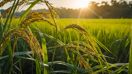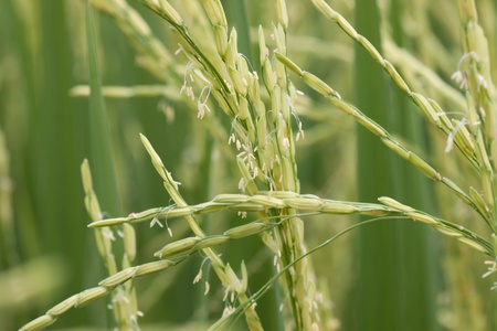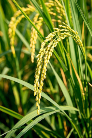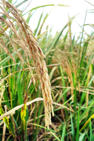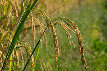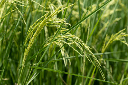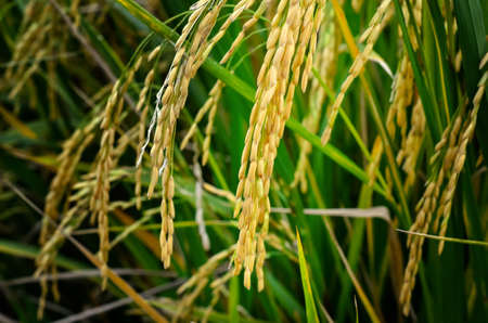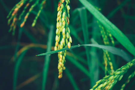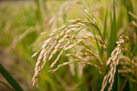 Thai rice seeds before harvest. ears of Thai jasmine rice.