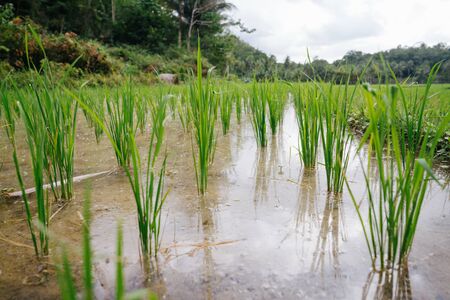 Close up of green paddy rice field. Asia, Bali, Indonesia