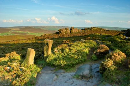 Out across the Derbyshire countryside from the top of Higger Tor on a bright autumn morning.