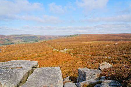 View of Stanage Edge in Peak district, an upland area in England at the southern end of the Pennines, UK