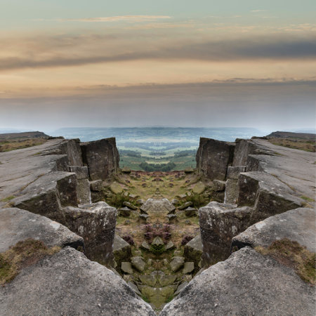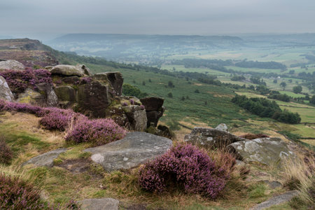 From weathered gritstone rocks and abandoned millstones to the distant misty Derbyshire Peak District countryside