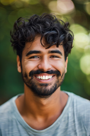 A smiling young man portrait, radiating joy and confidence in an outdoor setting