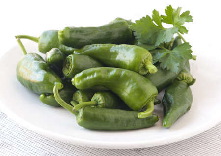 Padron peppers isolated on white background. Variety of pepper typical of Galicia, in Spain.