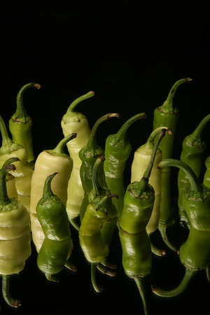 Close Up of Green Jalapeno Peppers on Black Concrete Background