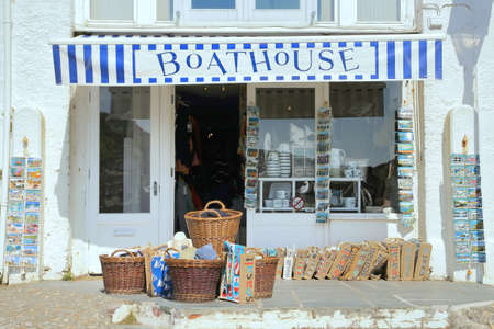 Port Isaac, Cornwall, UK - April 8th 2017: The Boathouse, a traditional seaside store offering maritime themed clothing and homeware, plus tourist souvenirs