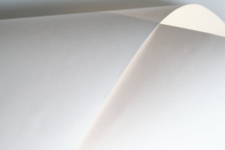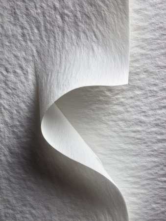 A close-up view of white paper creating a soft curve, illuminated by gentle light. This image highlights elegant textures and shadows for artistic expression.