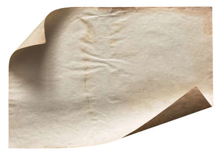 Empty sheet of lined paper with a curled corner creating copy space. Rustic texture and vintage aesthetic for notes or messages