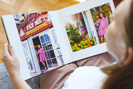 Woman Looking At Photo Album Or Photobook