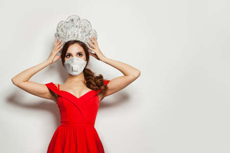 Fashion portrait of beautiful young woman with crown. Beauty, fashion.