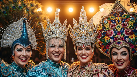 Portrait of a group of women in traditional costume at the festival in Thailand.