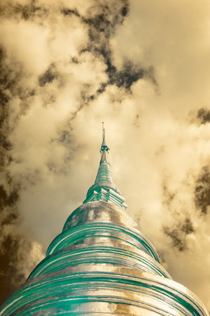 three tip of ancient stupa decorated by porcelain in tilt angle