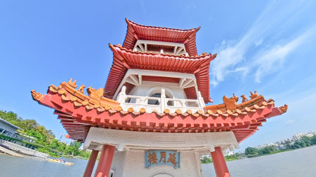 Pagoda in the temple with cloudy sky background, Taipei, Taiwan