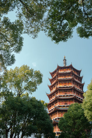 Immerse yourself in the splendor of Leifeng Pagoda, an iconic landmark nestled in the city of Hangzhou, China. The image showcases the majestic beauty of this ancient pagoda, which has withstood the test of time. Rising gracefully against the sky, it offers a glimpse into China's rich cultural heritage and architectural excellence. Leifeng Pagoda overlooks the scenic West Lake, adding to the enchanting ambiance of the surroundings. This captivating image captures the essence of ancient beauty, drawing travelers and photography enthusiasts alike to bask in its timeless allure