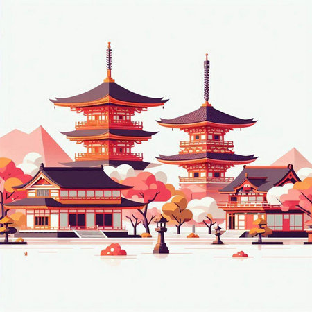 Kyoto Buddhist temple and pagoda in Japan. Artistic interpretation.
