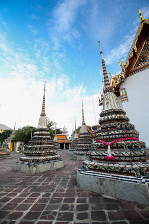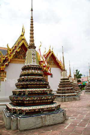 Beautifull decorated stupas and pagoda in Wat Pho temple, Bangkok. Thailand