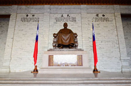 TAIPEI, TAIWAN - OCT 22: A large bronze statue of Chiang Kai-shek on October 22, 2013 in Taipei, Taiwan. This huge bronze statue dominates the main hall of the CKS memorial hall in Taipei, Taiwan.