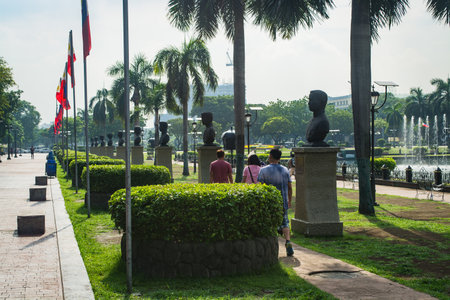 Rizal Park, Manila, Philippines July 2, 2014: Some of the heroes' busts along the path around the water fountain at the Rizal Park in Manila, Philippines