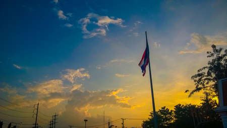Sky and Thai flag on pole, Bangkok, Thailand