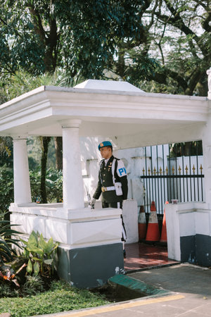 Bogor, Mei 26 2024. Guard post at Bogor City Presidential Palace, symbolizing vigilance and protection in the heart of the city's historic seat of power