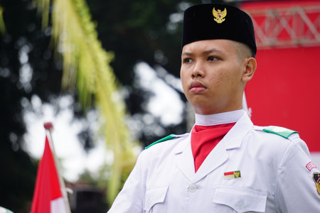 Paskibraka (Indonesian flag raiser) with national flag during grebeg pancasila