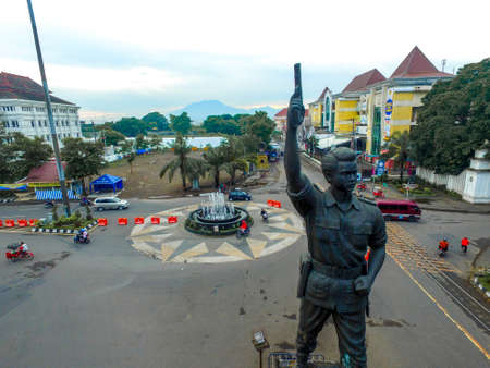 Surakarta, Indonesia – December 20, 2021: Gladak Statue or the Slamet Riyadi Statue is a form of appreciation to Captain Slamet Riyadi in the city of Solo in the afternoon. Jalan Tugu Slamet Riyadi