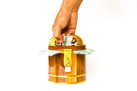 wanderlust. adventure concept.a girl puts a coin in jar with money