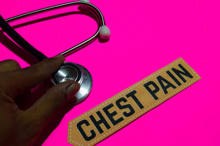 Chest Pain on the paper with medicare Concept Inspiration. Stethoscope on pink bakcground