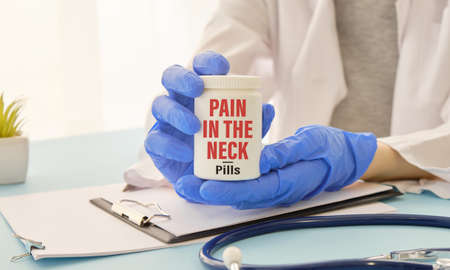 Dealing With Problem Concept. In the hand of the bank with the inscription Pain In The Neck