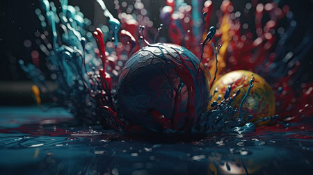Vivid abstract paint splatter with cinematic lighting and hyper-realistic detail