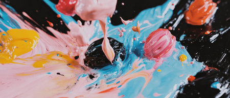 Bright, bold colors mix and collide, creating stunning splashes against a dark background. This energetic display captures the joy of artistic expression through liquid motion.