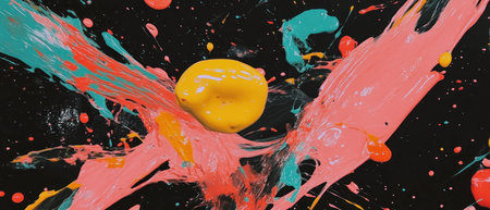 A vibrant and colorful paint splash art abstract background with a modern design, perfect for creative expression and artistic projects