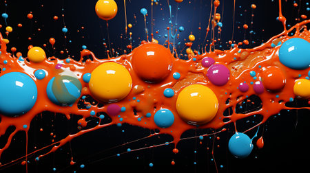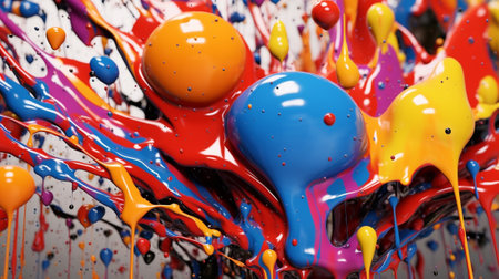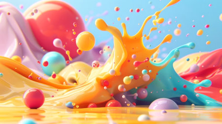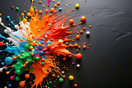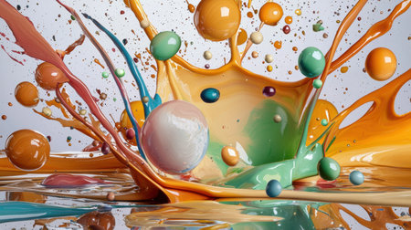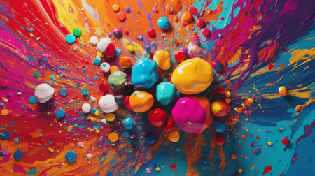 A stunning capture of a vibrant paint splash showcasing a dynamic burst of colors and playful droplets. Ideal for art and creativity themes.