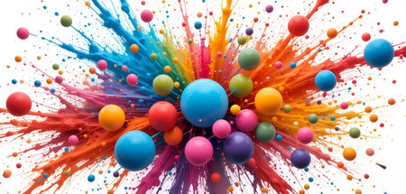 Bright and colorful splashes of paint create an abstract explosion on a white background showcasing artistic expression